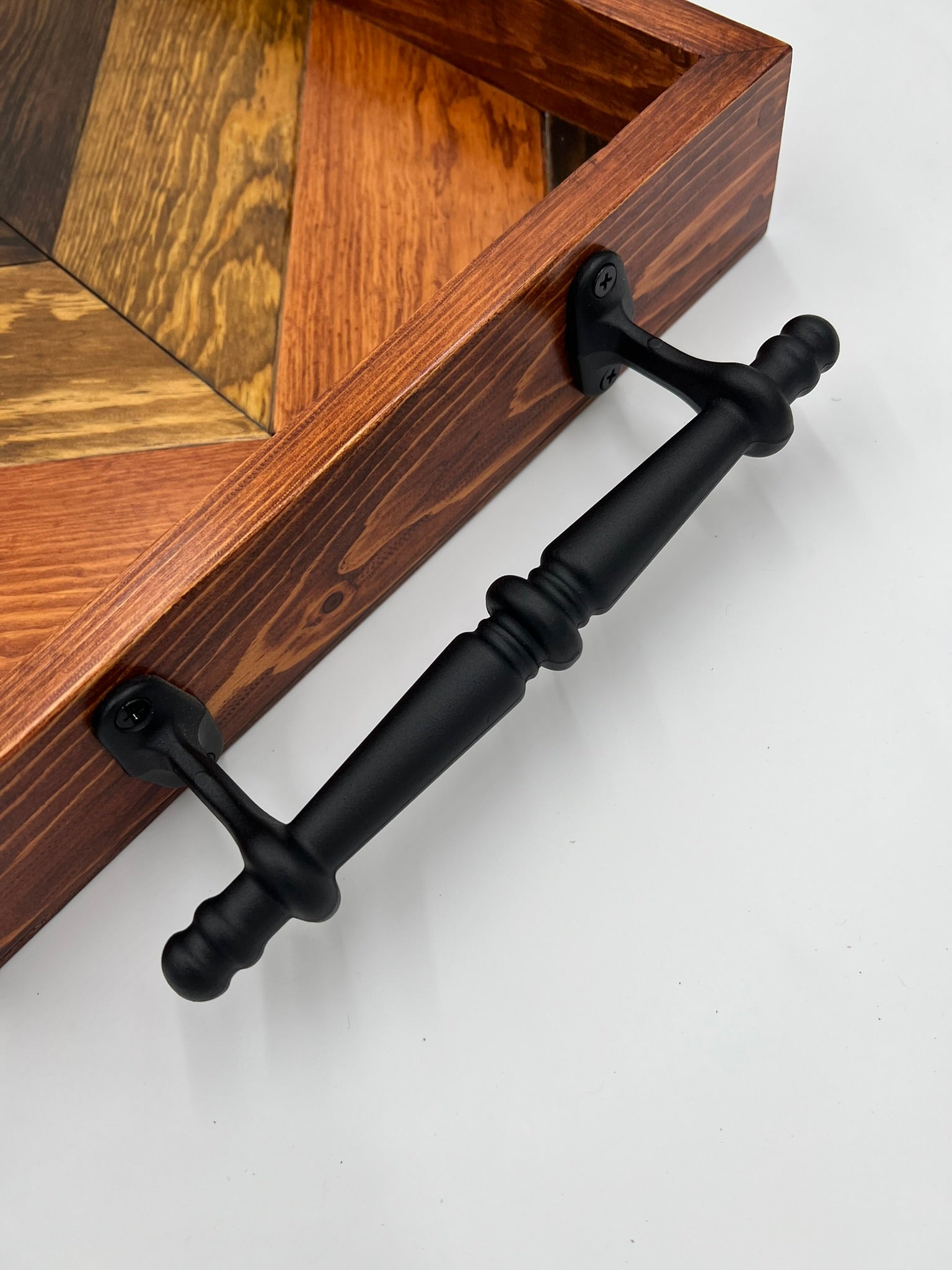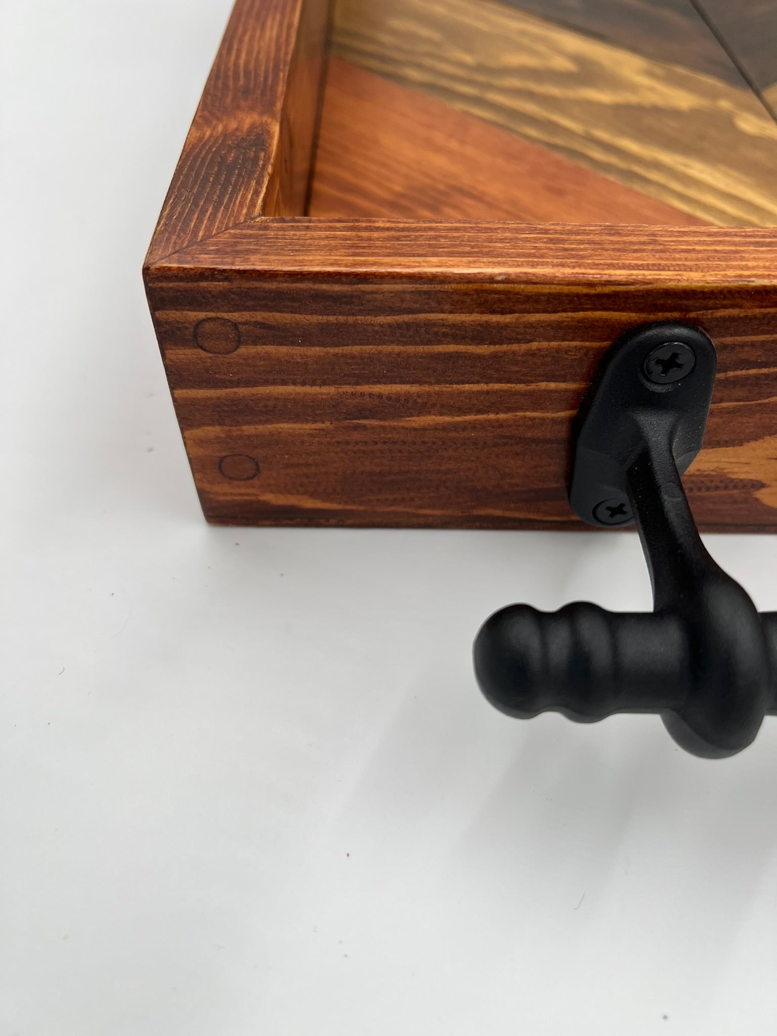 Expertly handcrafted from solid pine, this serving tray features a unique diagonal cut design with multiple colors, perfect for adding a touch of elegance to your dining experience. This tray is not only eye-catching, but also functional, making it an essential addition to any kitchen or dining room.